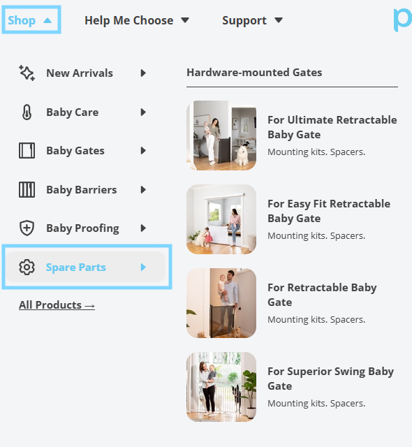 If you need replacement parts or accessories for any of our hardware-mounted gates, we make it easy to find everything you need through our online store.